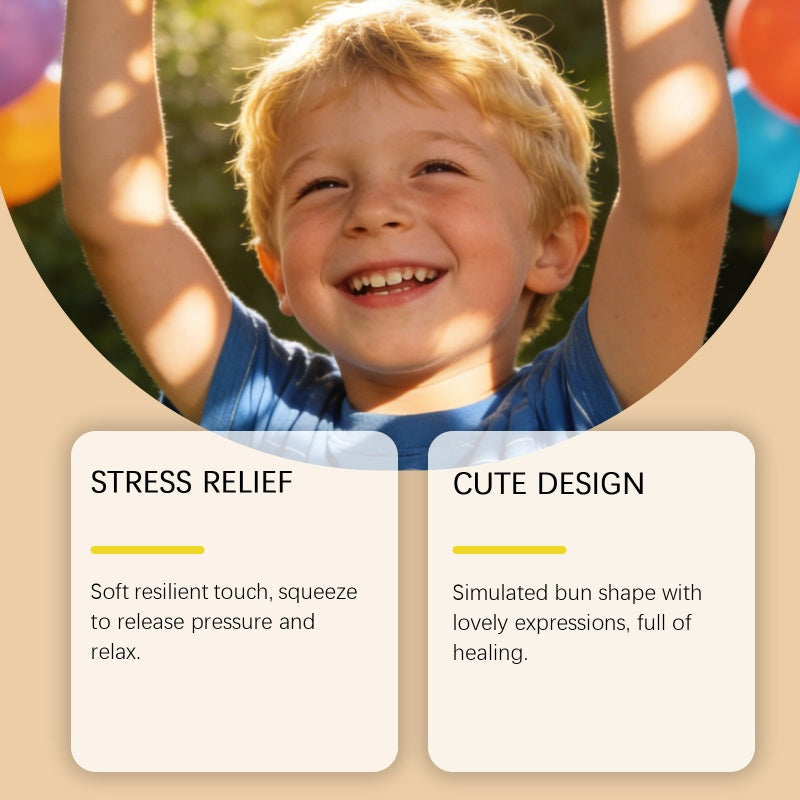FÖRTJUSANDE & LÄKANDE DESIGN - Denna leksak är formad som en söt ångkokt bulle med ett charmigt uttryck och fungerar även som ett charmigt skrivbordsaccessoar. Dess läkande utseende kan omedelbart lyfta ditt humör bara genom att titta på den.